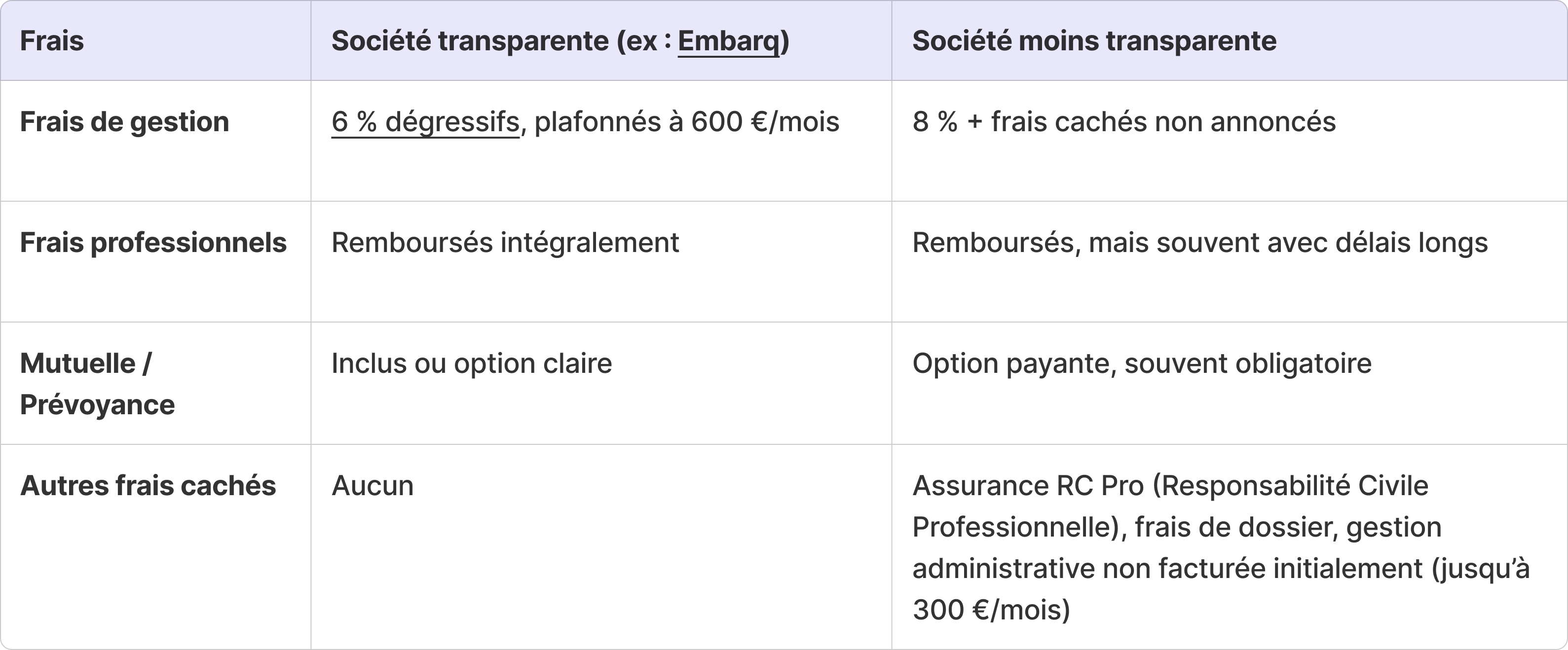 La transparence est cruciale pour bien choisir sa société de portage. Privilégiez celles affichant un label « zéro frais cachés » pour éviter les mauvaises surprises.